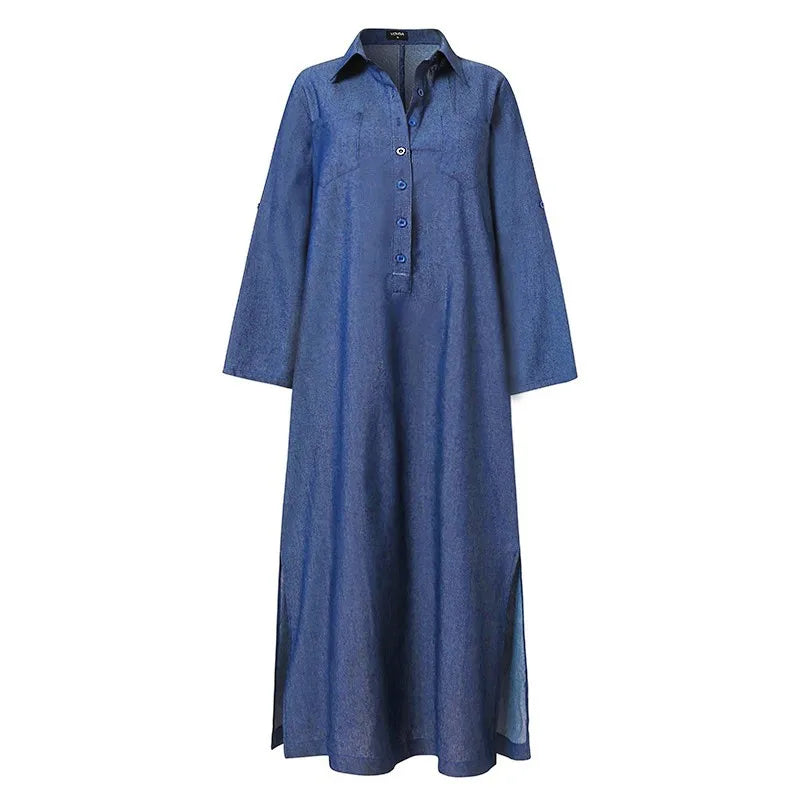 Women's Denim Long Dress Half Open A-line Straight Sleeve